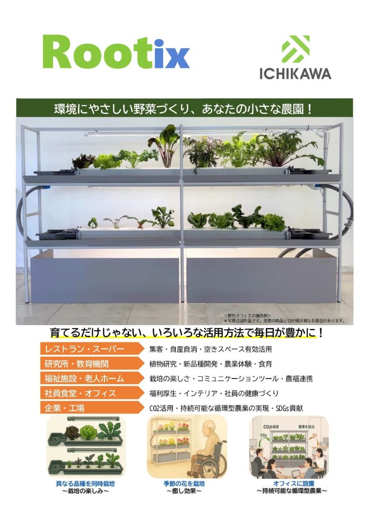 Rootix(ルーティクス)は、植物の根域環境を統合的に制御・最適化する水耕栽培テクノロジーです。
