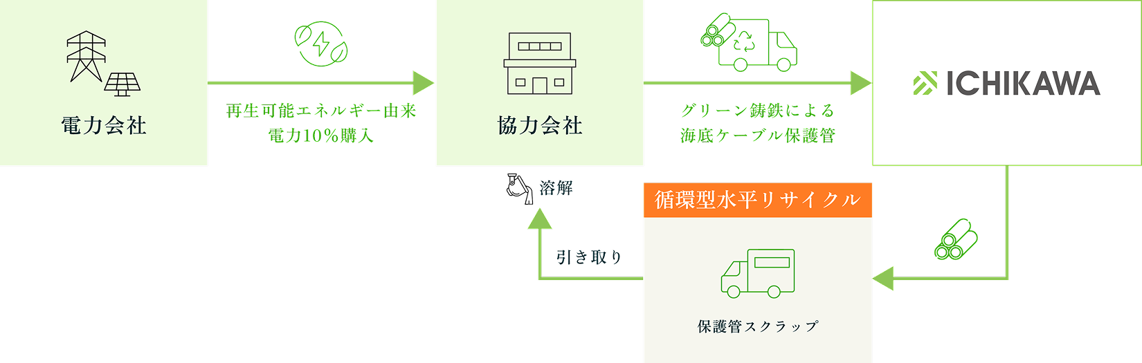 可能エネルギー由来の電力とする特約で、製造過程におけるCO2排出がゼロとなる「グリーン鋳鉄」の製造・供給が可能になりました。